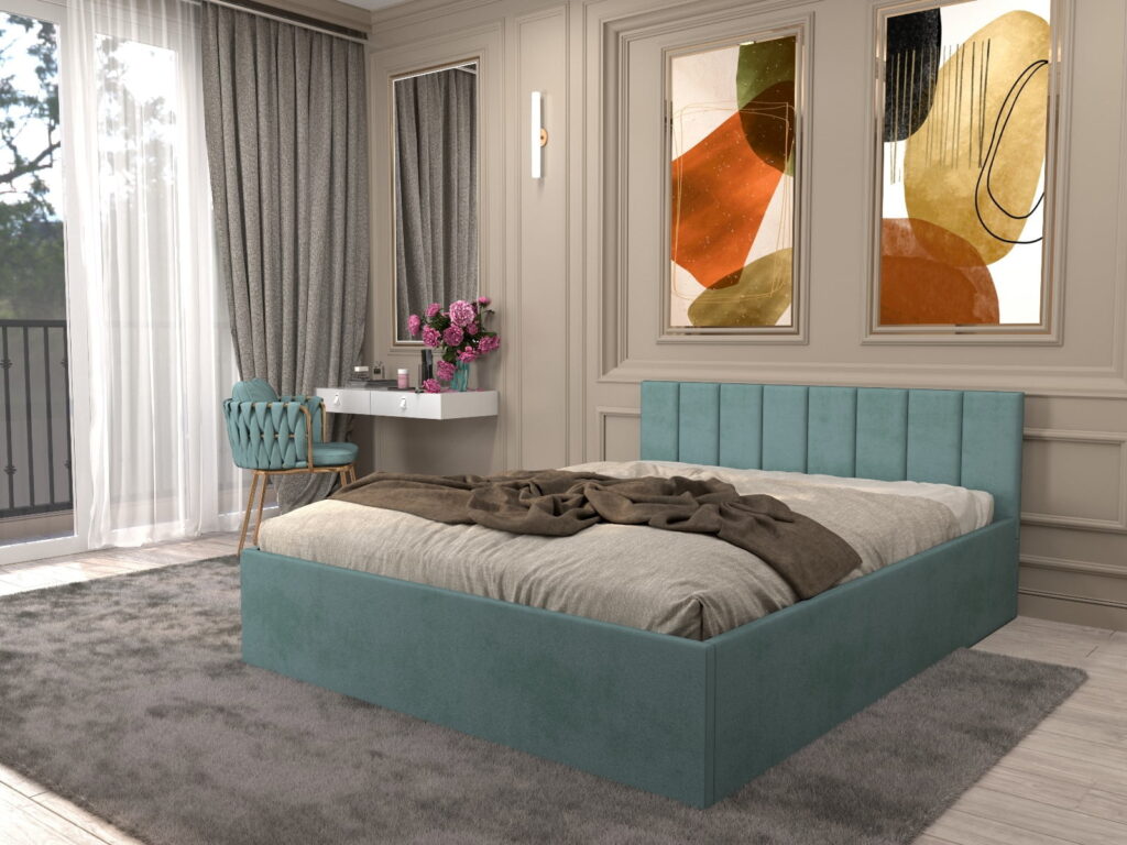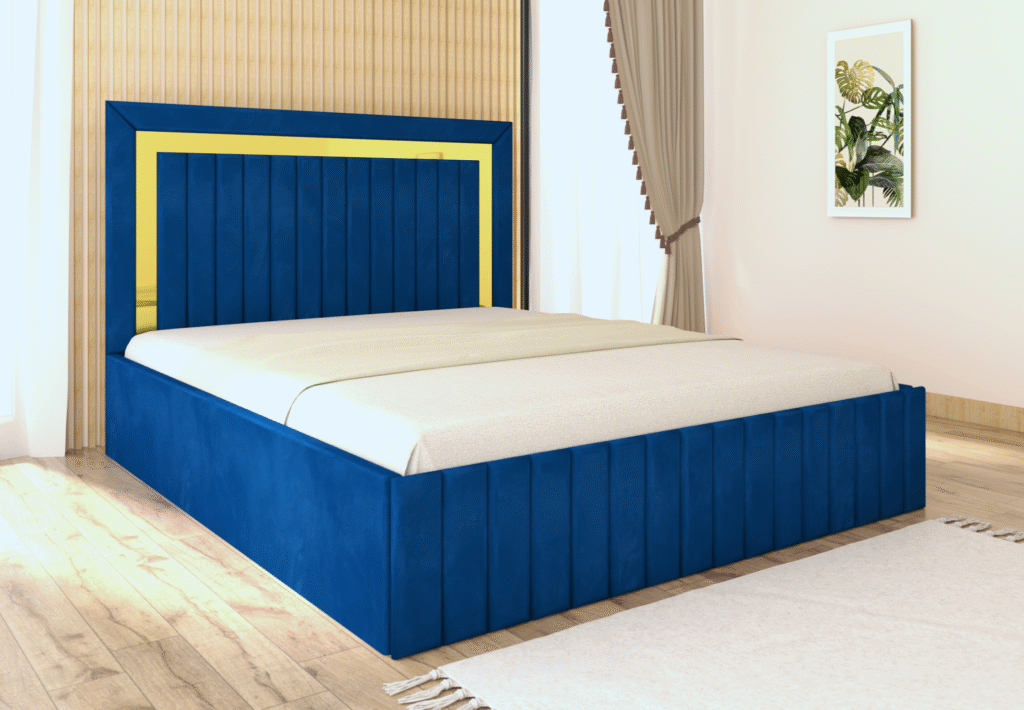 Pat tapitat Matei Albastru Stofa cu oglinda Gold