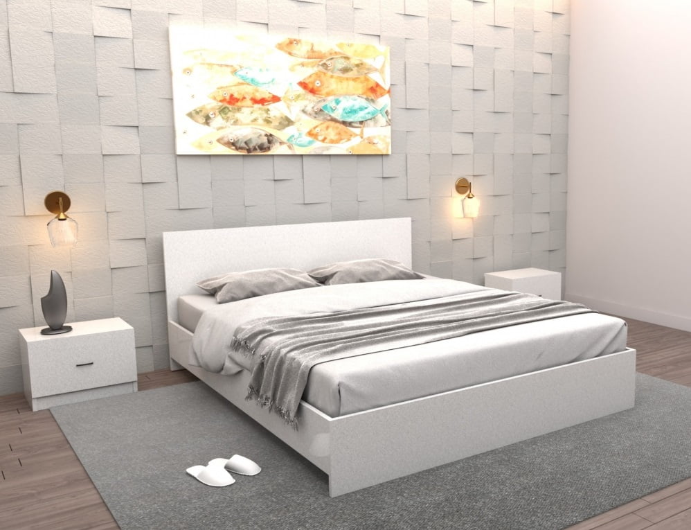 Completează-ți spațiul cu un dormitor modern, compus din pat matrimonial tapițat și dulap spațios cu uși glisante, ideal pentru un ambient curat, aerisit și rafinat. Perfect pentru un stil modern!