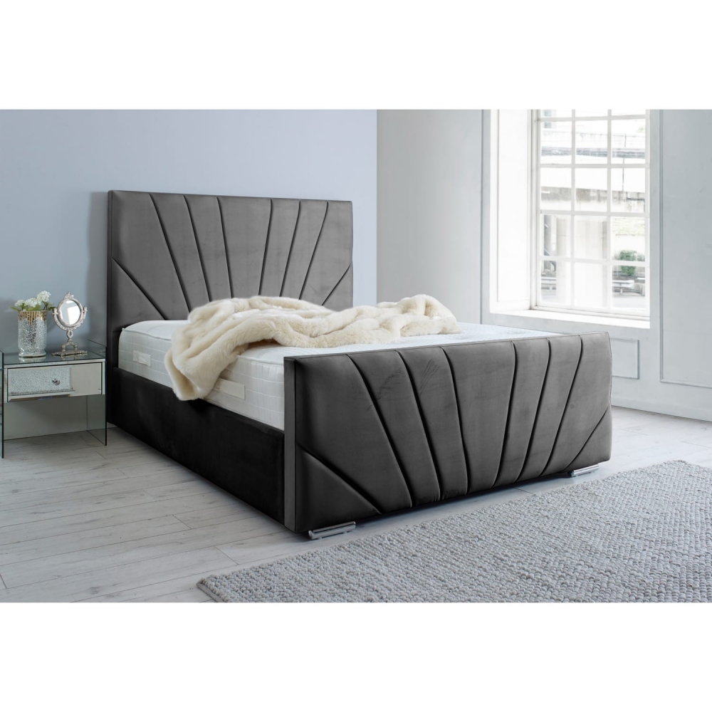 Pat tapitat Matei Gri Stofa cu oglinda Neagra