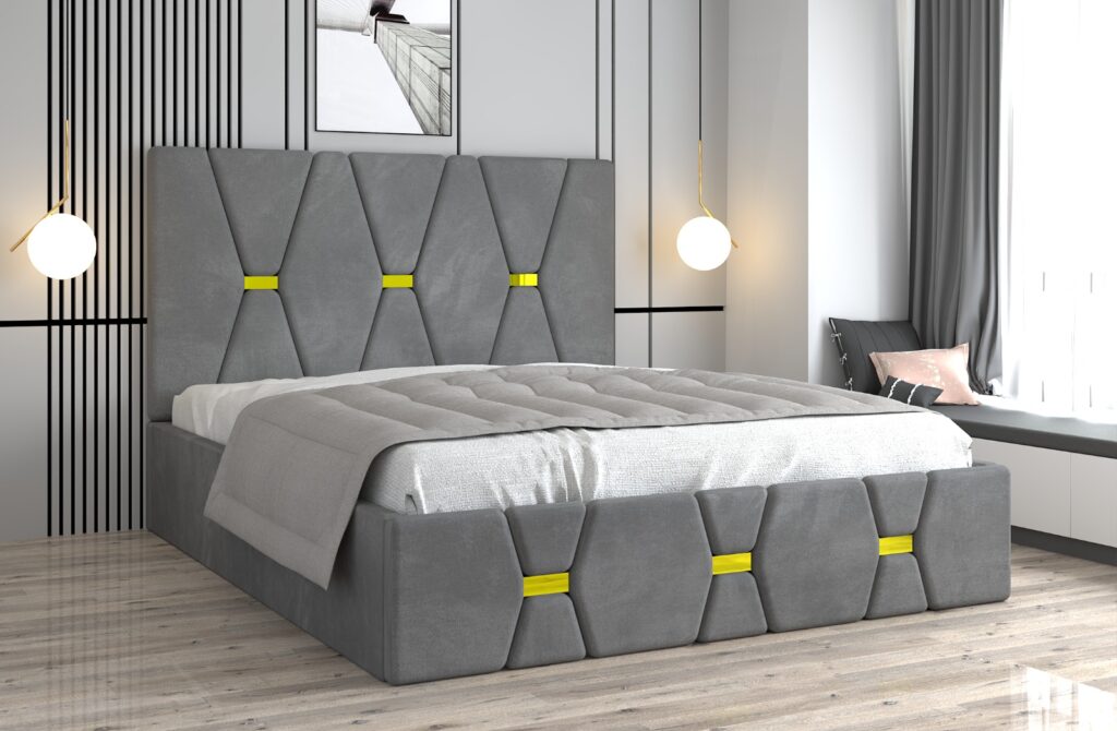 Pat tapitat Matei Gri Stofa cu oglinda Neagra