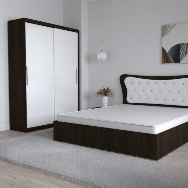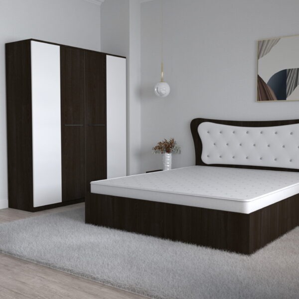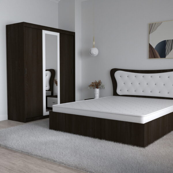 Dormitor Dante Magia Alb cu Pat Matrimonial 160 cm x 200 cm Dulap Lorena 3 usi si Noptiere