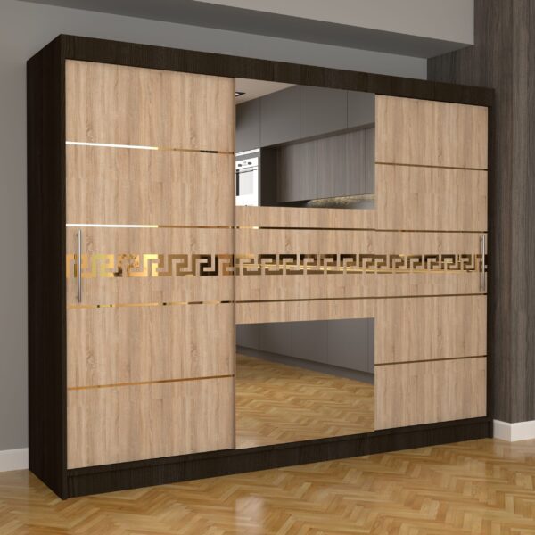 Dulap Dormitor Nova Gold 250 cm x 200 cm cu oglinda Wenge cu usi glisante Sonoma