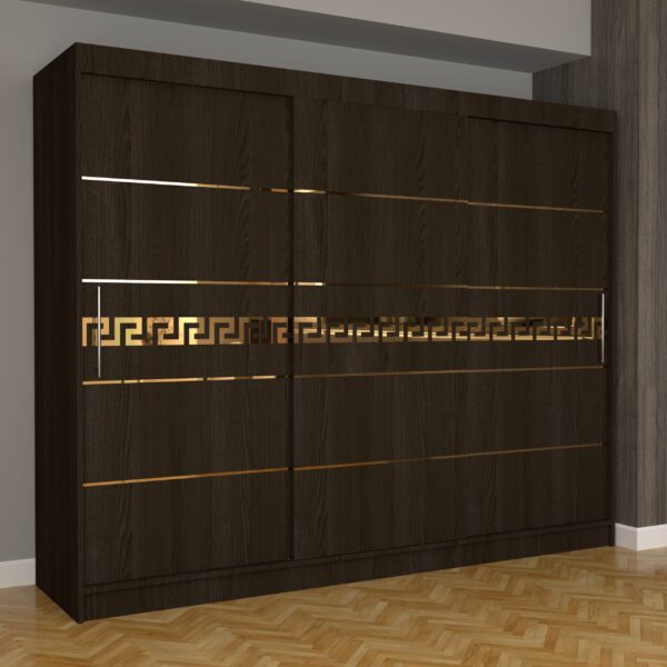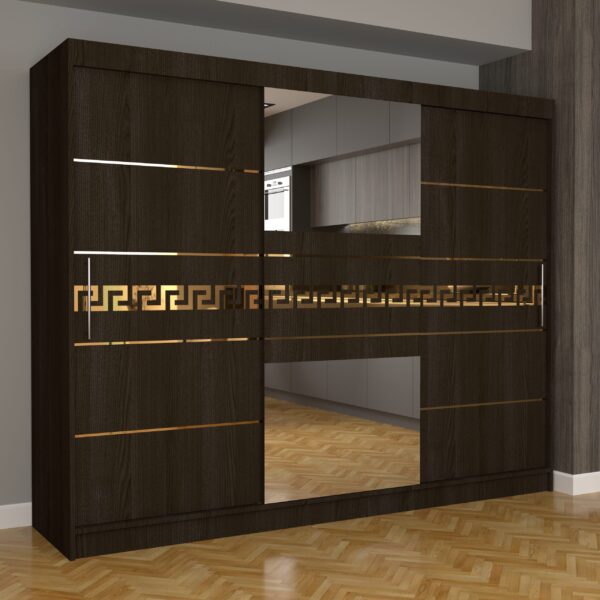 Dulap Dormitor Nova Gold 250 cm x 200 cm cu oglinda Wenge cu usi glisante Wenge