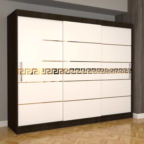 Dulap Dormitor Nova Gold 250 cm x 200 cm cu oglinda Alb cu usi glisante Wenge