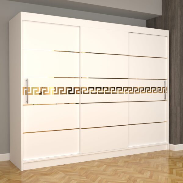 Dulap Dormitor Nova Gold 250 cm x 200 cm cu oglinda Alb cu usi glisante Alb