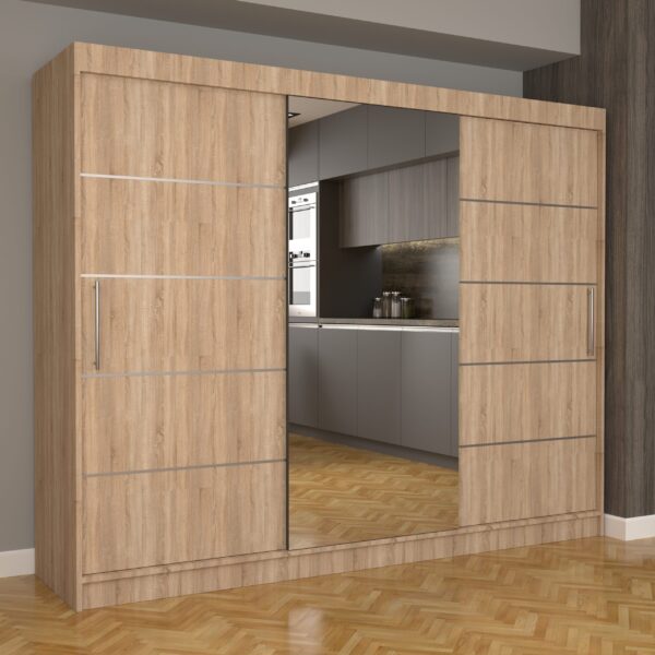 Dulap Dormitor Nova Plus 250 cm x 200 cm , cu oglinda , Sonoma cu usi glisante Sonoma