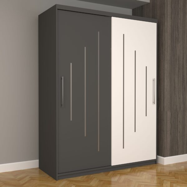 Dulap Dormitor Nova Ultra 150 cm x 200 cm fara Oglinda Gri cu usi glisante Gri Albe