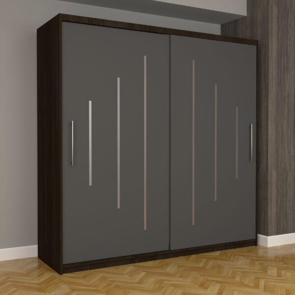 Dulap Dormitor Nova Ultra 200 cm x 200 cm , fara oglinda , wenge cu usi glisante gri