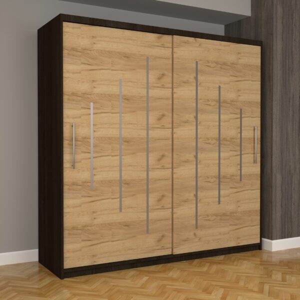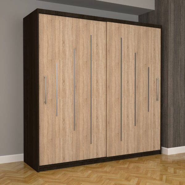 Dulap Dormitor Nova Ultra 200 cm x 200 cm , fara oglinda , wenge cu usi glisante stejar sonoma