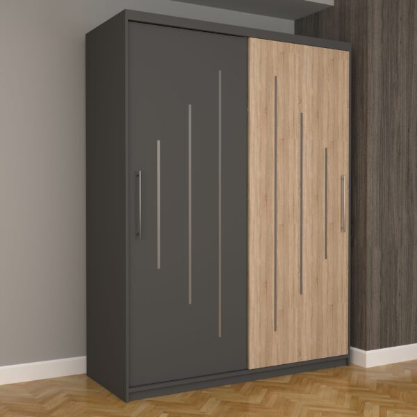 Dulap Dormitor Nova Ultra 150 cm x 200 cm fara oglinda Gri cu usi glisante Albe