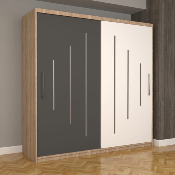 Dulap Dormitor Nova Ultra 200 cm x 200 cm , fara oglinda , sonoma cu usi glisante gri alb