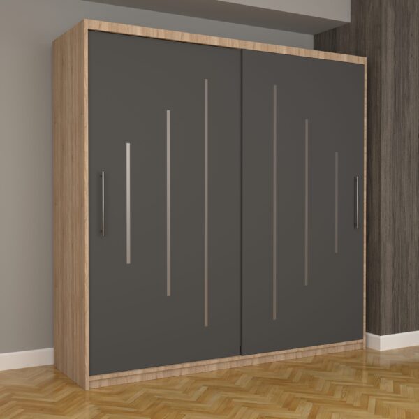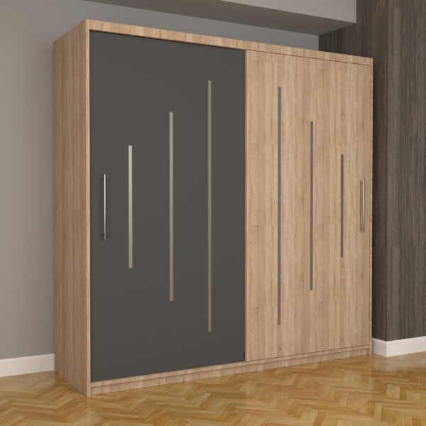 Dulap Dormitor Nova Ultra 200 cm x 200 cm , fara oglinda , sonoma cu usi glisante gri