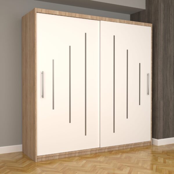 Dulap Dormitor Nova Ultra 200 cm x 200 cm , fara oglinda , sonoma cu usi glisante albe