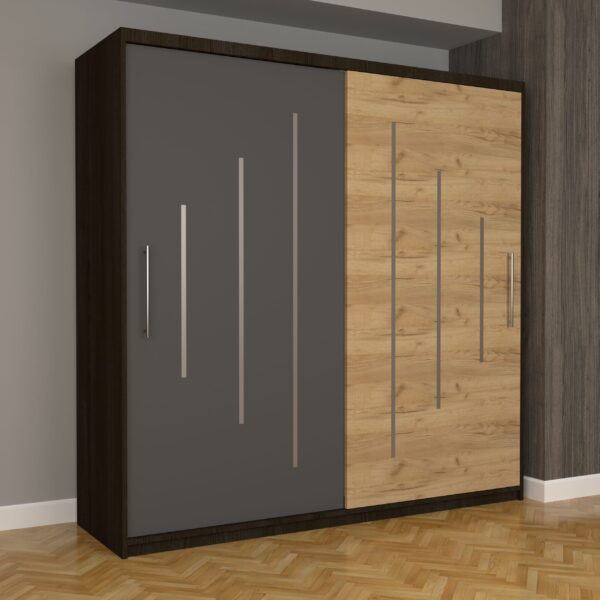 Dulap Dormitor Nova Ultra 200 cm x 200 cm , fara oglinda , wenge cu usi glisante gri oak craft gold