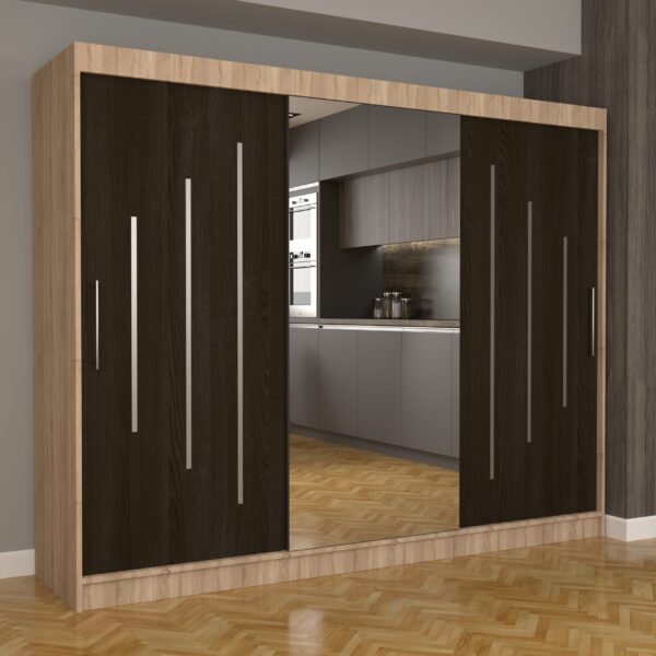 Dulap Dormitor Nova Ultra 250 cm x 200 cm , cu Oglinda , Sonoma cu usi glisante Wenge