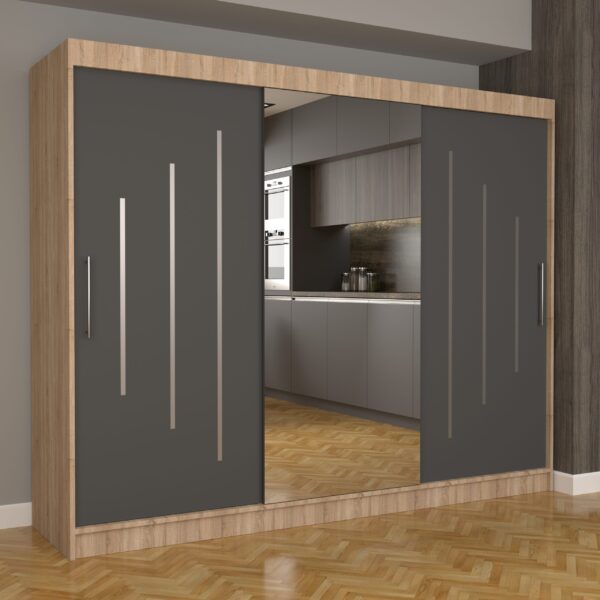 Dulap Dormitor Nova Ultra 250 cm x 200 cm , cu Oglinda , Wenge cu usi glisante Gri