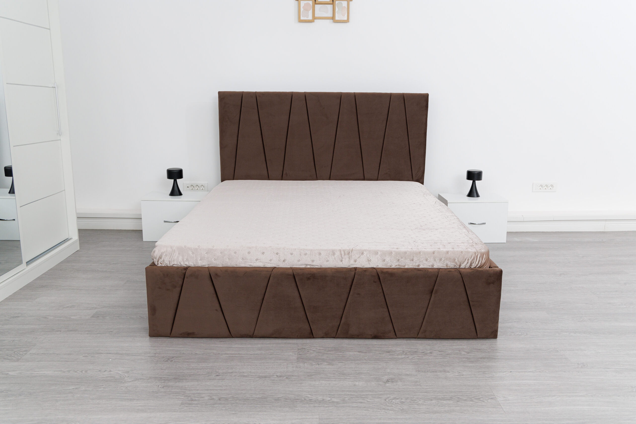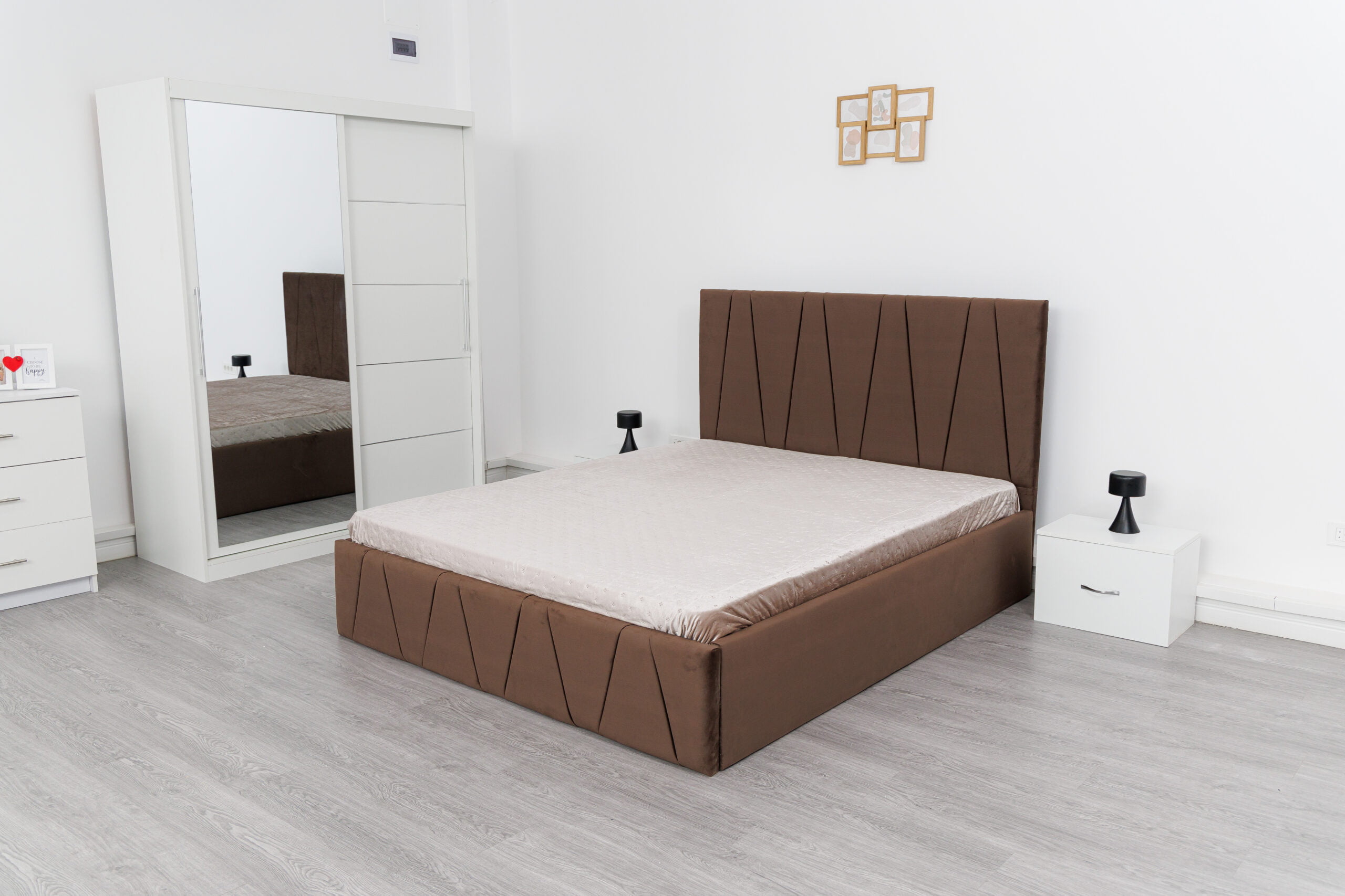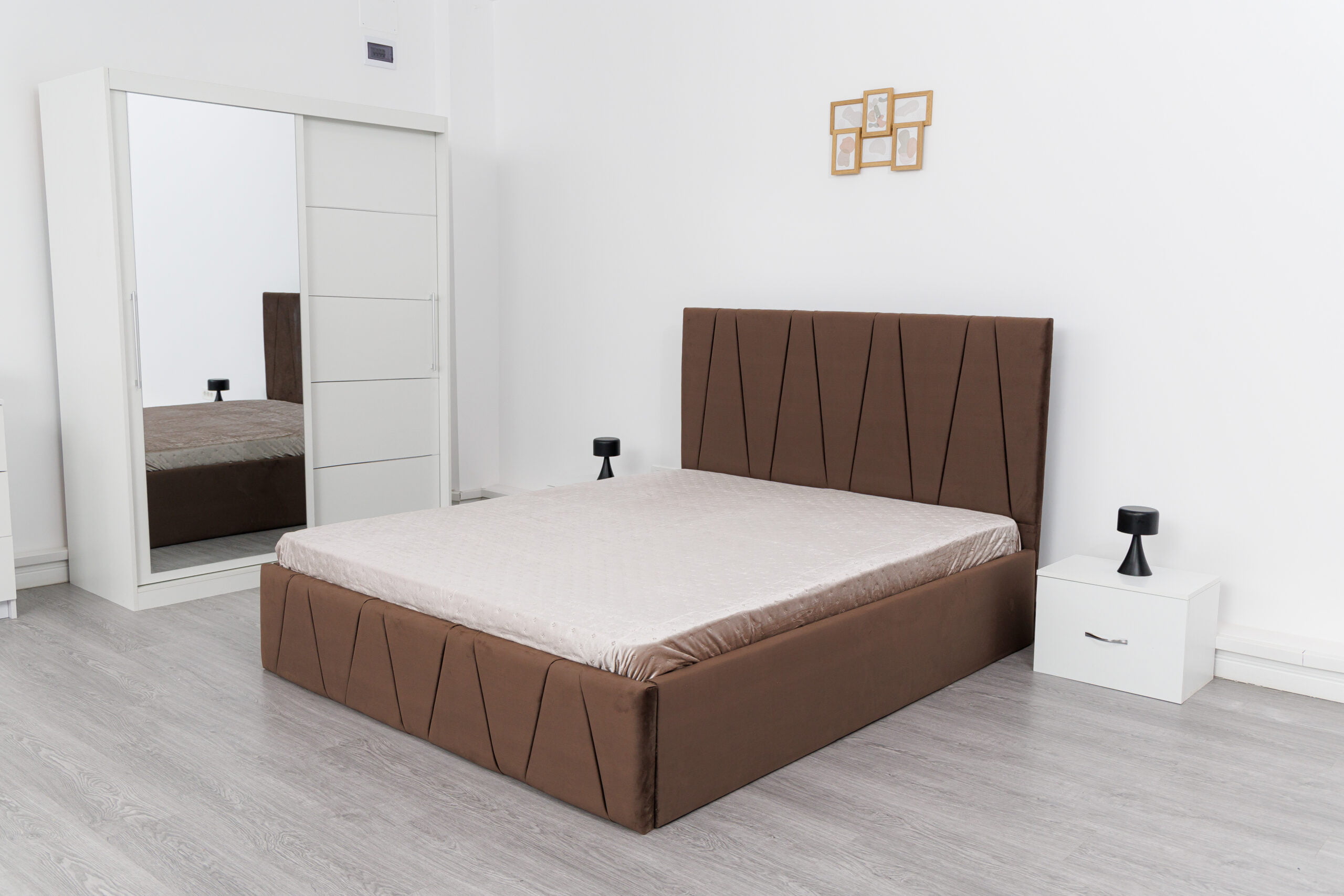 Fii primul care scrii o recenzie pentru „Dormitor Eric Alb cu Pat Tapitat Maro Stofa Dulap Usi Glisante 150 x 200 cm Alb cu oglinda si Noptiere”