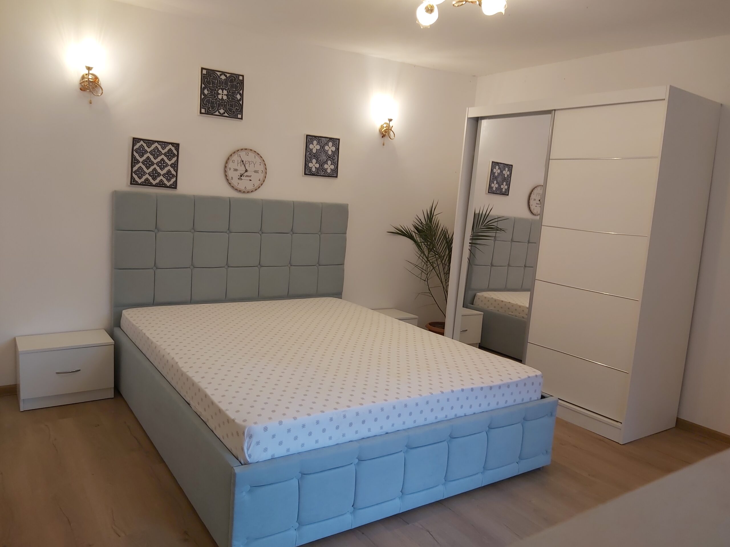 Dormitorul Regal Alb cu pat tapitat Vernil și dressing cu oglindă este o alegere elegantă și sofisticată pentru dormitorul tău. Culoarea albă a pieselor de mobilier creează un aer de lumină și spațiu, în timp ce finisajul vernil al patului și adaugă o notă de rafinament și eleganță. Patul tapitat cu o textură fină și moale oferă confortul necesar pentru o noapte de odihnă relaxantă. Dressing-ul spațios cu oglindă este util pentru a-ți organiza hainele și accesoriile într-un mod ordonat și eficient. Dormitorul Regal Alb cu pat tapitat Vernil și dressing cu oglindă este alegerea perfectă pentru a crea un decor de dormitor sofisticat și plin de stil.