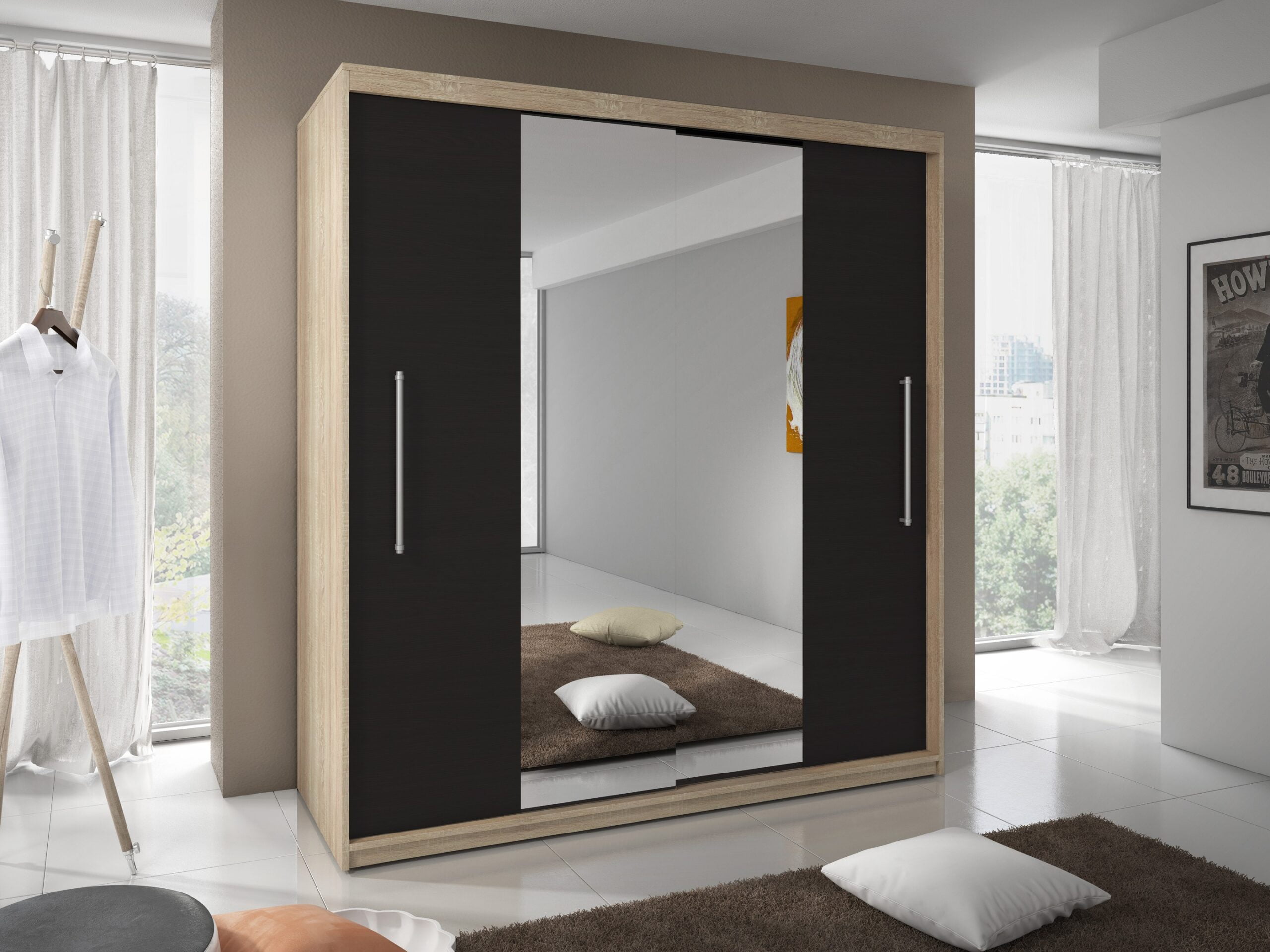 Dressing Sebastian 200 cm Sonoma cu usi Wenge glisante cu oglinda