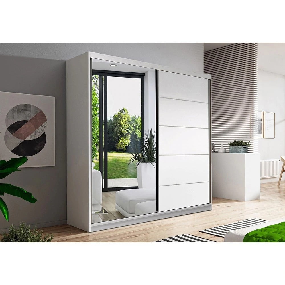 Dressing-ul Violeta este o piesă de mobilier modernă și practică, cu o lățime de 150 de cm, finisată în tonuri calde de lemn. Ușile glisante și oglinda îi adaugă un plus de funcționalitate și stil, iar bara pentru umerase îți oferă un spațiu suplimentar pentru suspendarea hainelor. Dressing-ul oferă o mulțime de spațiu de depozitare, cu polite, astfel încât să puteți organiza hainele și accesoriile într-un mod ordonat și accesibil. Este perfect pentru orice dormitor modern și poate fi utilizat pentru a crea un spațiu de îmbrăcare practic și elegant.
