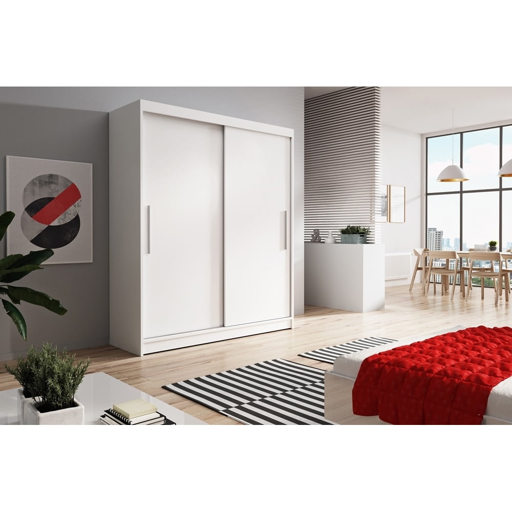 Dressing-ul Violeta cu lățimea de 150 cm este un mobilier modern și funcțional, fabricat din pal melaminat de înaltă calitate în culoarea albă. Ușile glisante albe și fără oglindă oferă acces facil la un spațiu generos de depozitare pentru haine, încălțăminte și accesorii. Designul său simplu și elegant se integrează perfect în orice dormitor sau dressing, iar finisajele atent realizate îi asigură o durabilitate îndelungată. Cu ajutorul acestui dressing, vă veți putea organiza cu ușurință hainele și veți avea un spațiu ordonat și plăcut pentru pregătirea zilnică.
