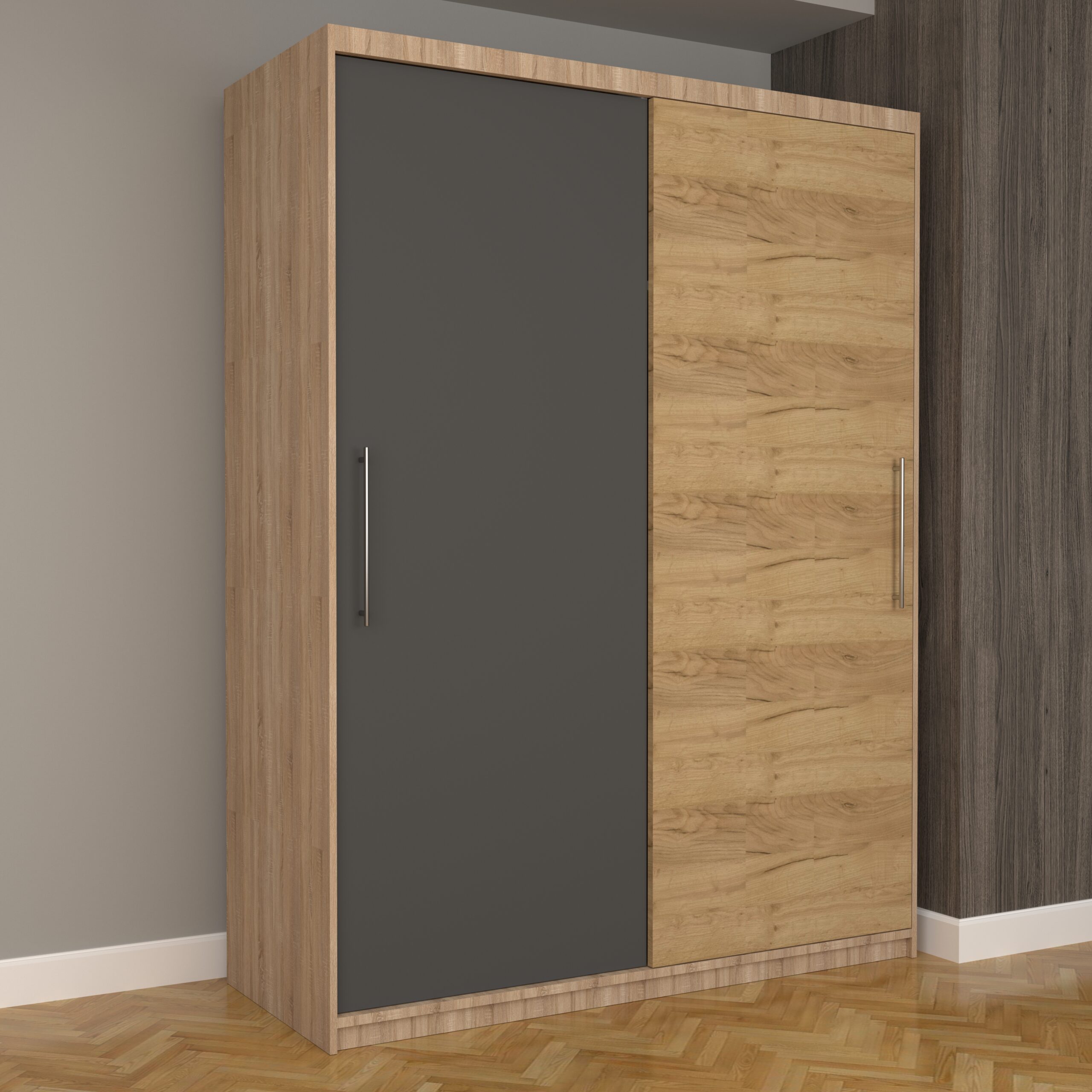 Dulap Dormitor Nova Eco 150 cm x 200 cm, fara oglinda, sonoma cu usi glisante gri oak craft gold