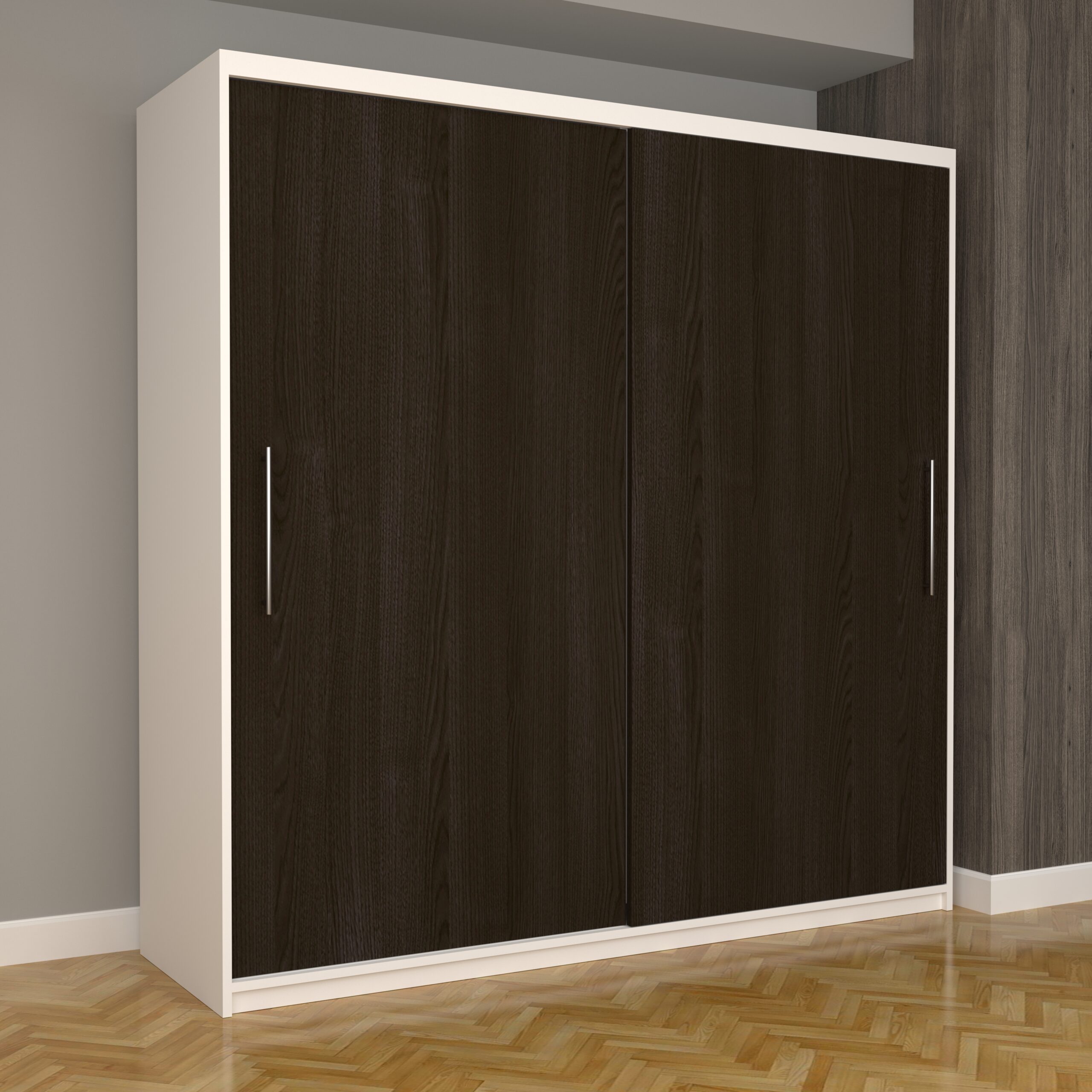 Dulap Dormitor Nova Eco 200 cm x 200 cm, fara oglinda, alb cu usi glisante wenge