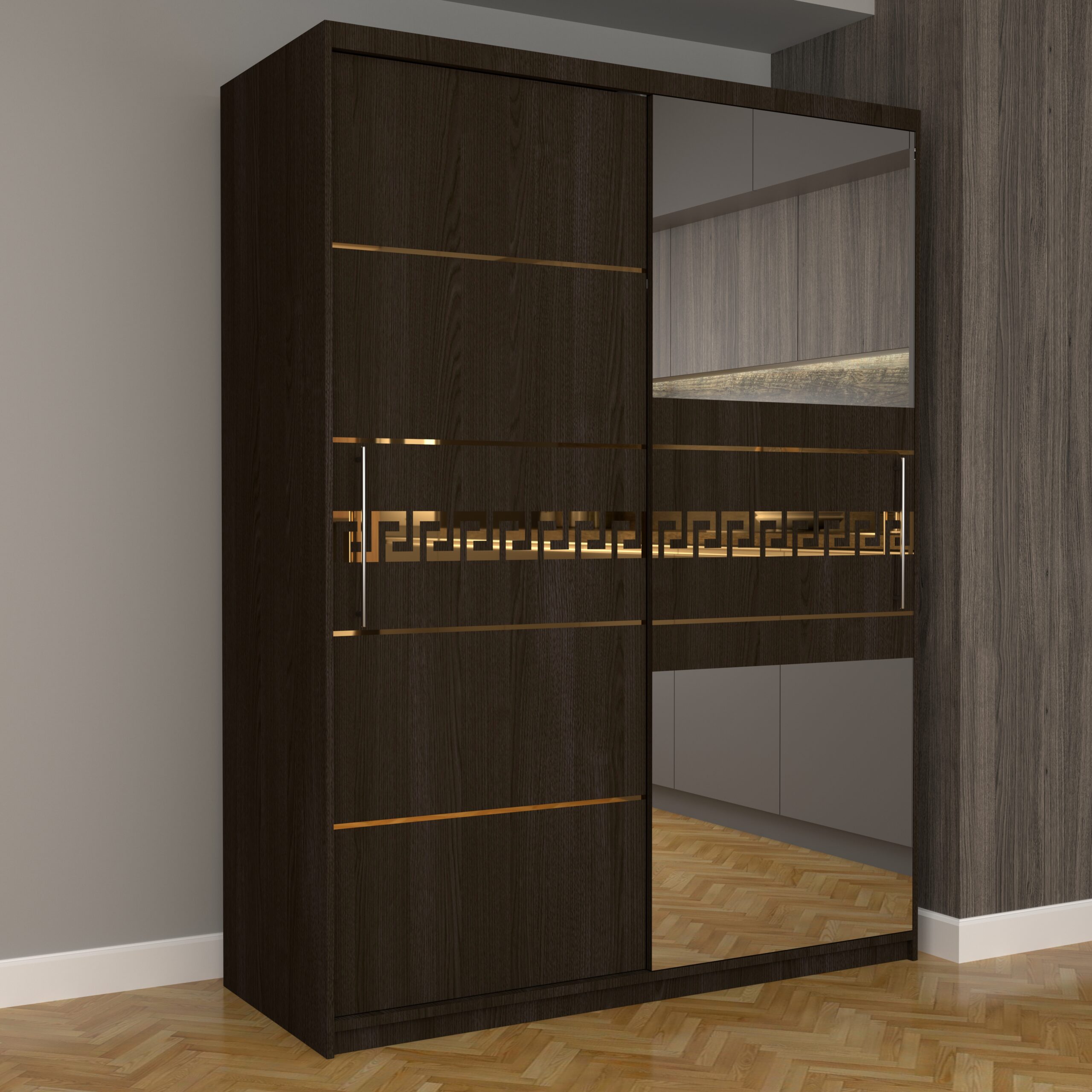 Dulap Dormitor Nova Gold 150 cm x 200 cm cu oglinda Wenge cu usi glisante Wenge
