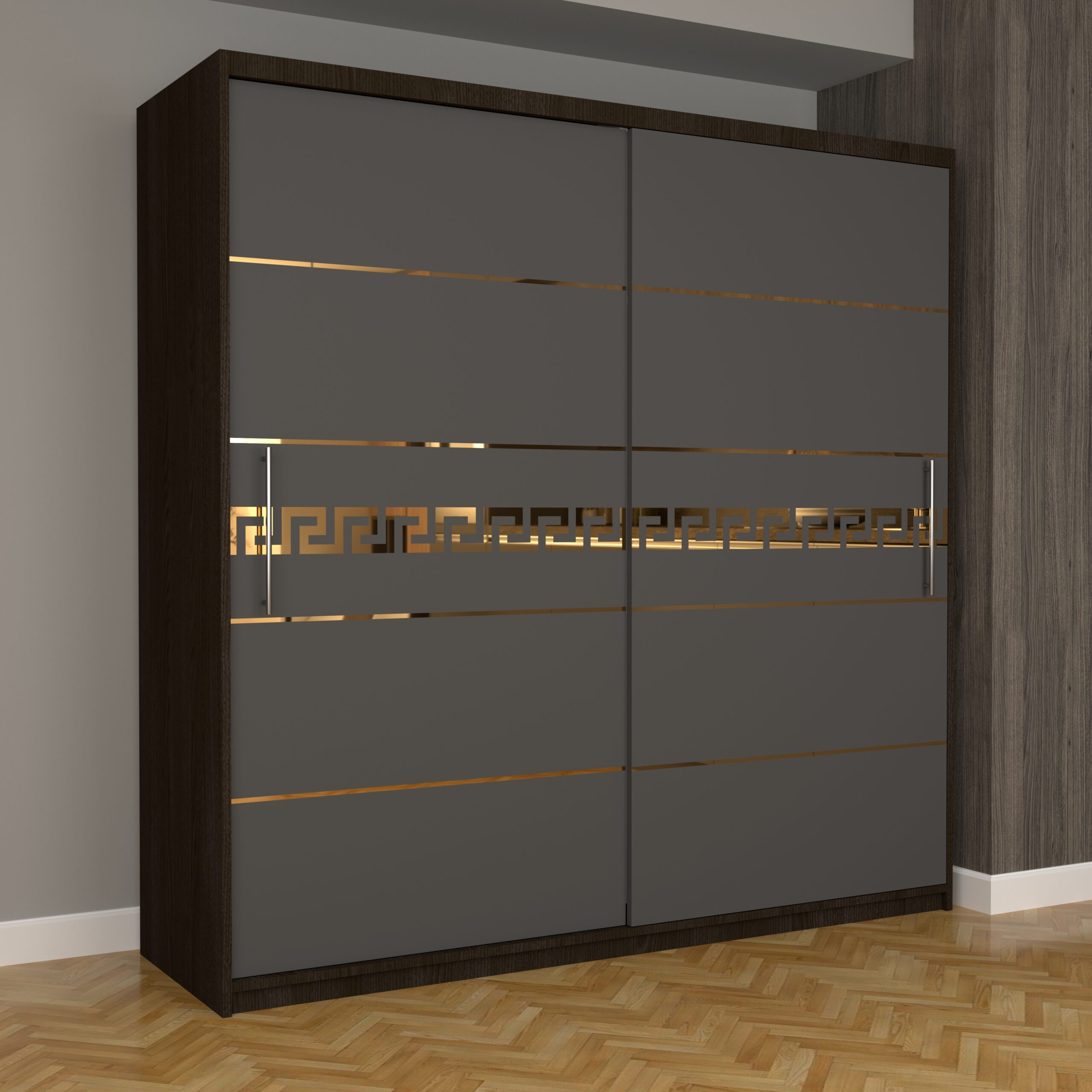 Dulap Dormitor Nova Gold 200 cm x 200 cm fara oglinda Wenge cu usi glisante Gri