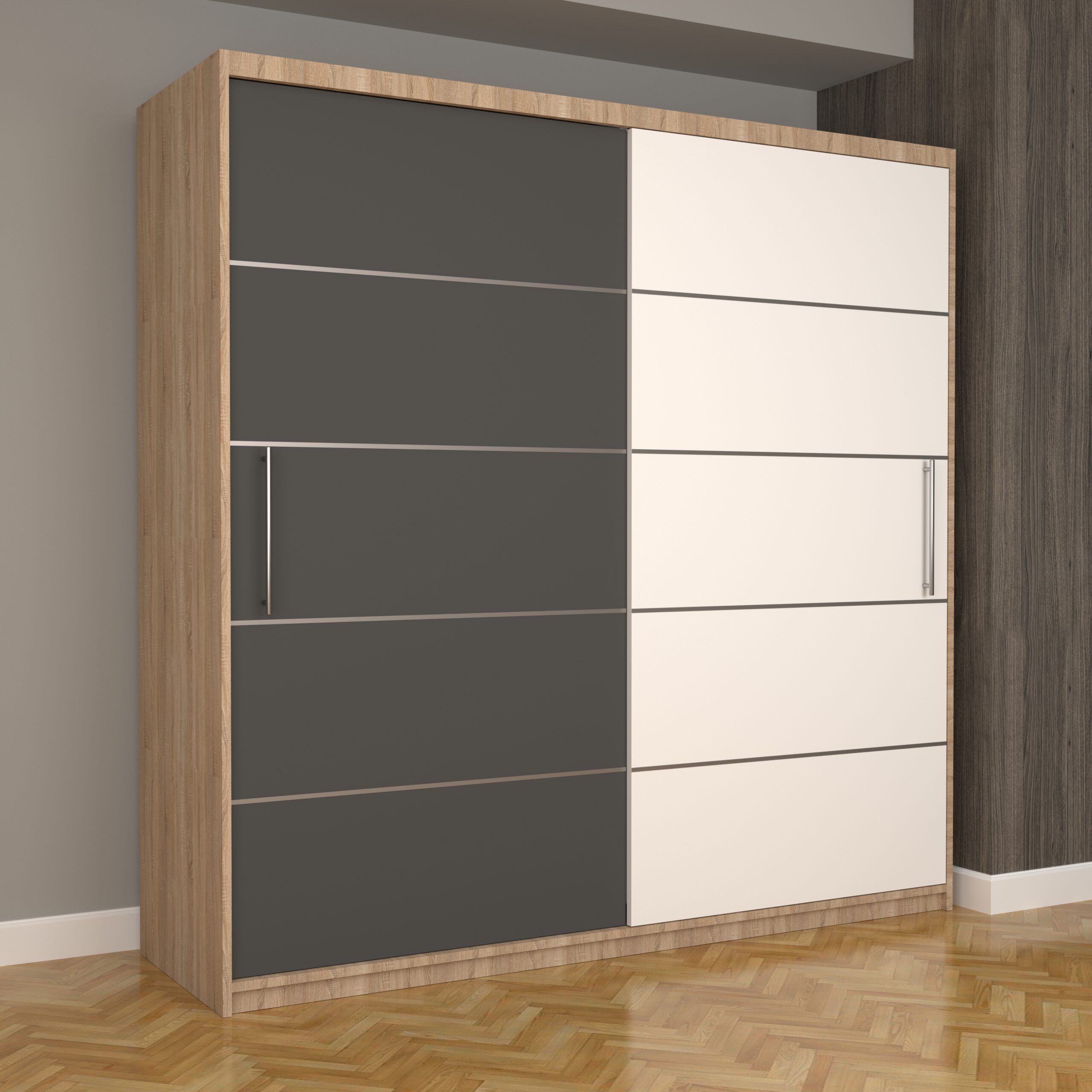 Dulap Dormitor Nova Plus 200 cm x 200 cm, fara oglinda, Sonoma cu usi glisante Gri Alb