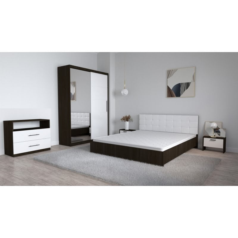 Set Dormitor Coral Wenghe cu tablie tapitata Alba Dressing 2 usi glisante cu oglinda Noptiere si Comoda TV Royal