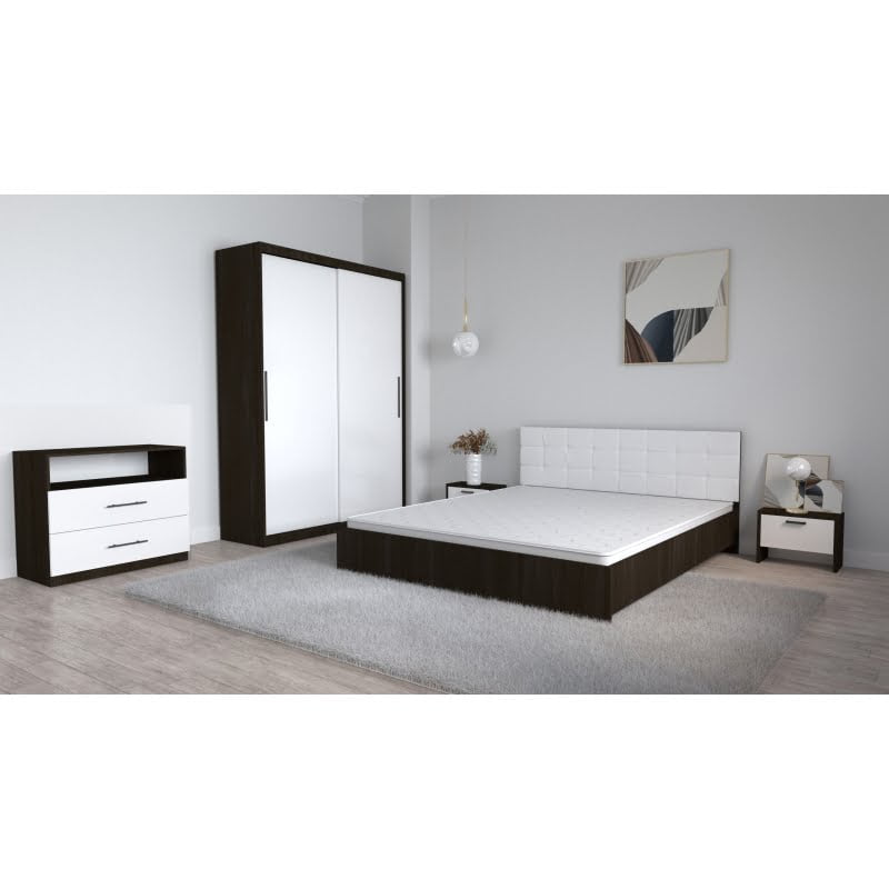 Set Dormitor Coral Wenghe cu tablie tapitata Alba Dressing 2 usi glisante fara oglinda Noptiere si Comoda TV Royal