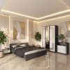 Dormitor Zoe Gold Gri Dulap Cu Oglinda si Pat cu 2 Noptiere