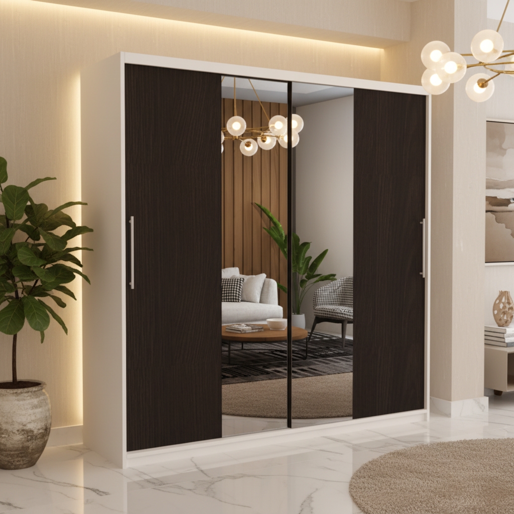 Dresing Delia 200 Alb cu Oglinda si Usi Wenge
