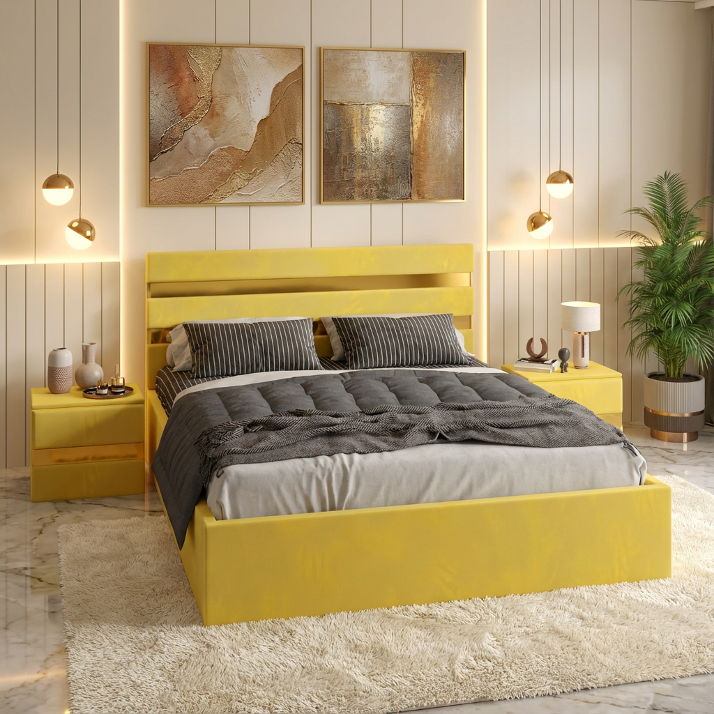 Pat Tapitat Adria Galben Cu Noptiere Tapitate