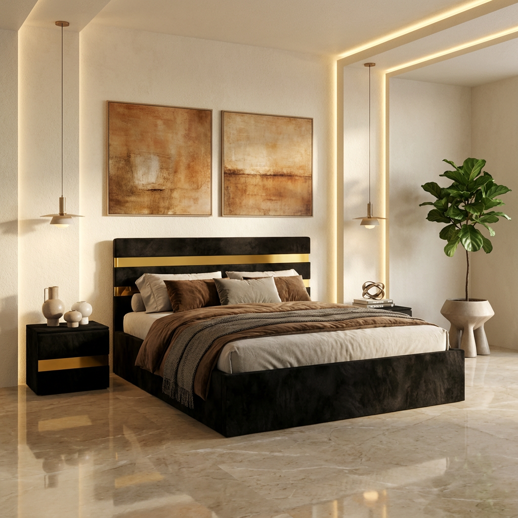 Pat Tapitat Adria Negru Cu Noptiere Tapitate
