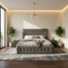Tapițeria moale, plăcută la atingere, împreună cu structura solidă, oferă confort zilnic, durabilitate și stabilitate, fiind alegerea ideală pentru un dormitor modern și rafinat.