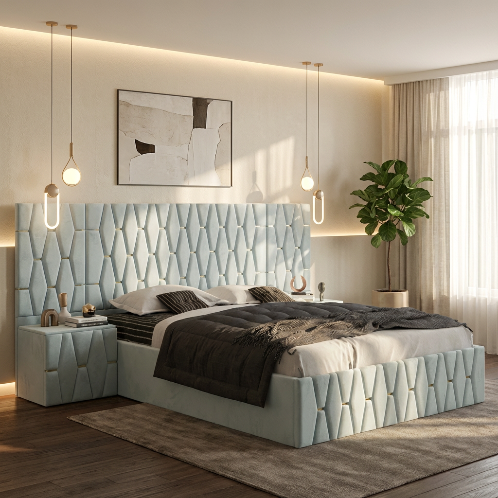 ✅ Noptiere tapițate asortate – completează perfect designul dormitorului și oferă funcționalitate suplimentară.