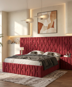 Pat Tapitat Iris Rosu Cu Extensii Si Noptiere Tapitate