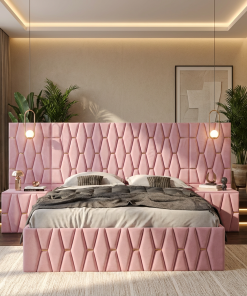 Pat Tapitat Iris Roz Cu Extensii Si Noptiere Tapitate