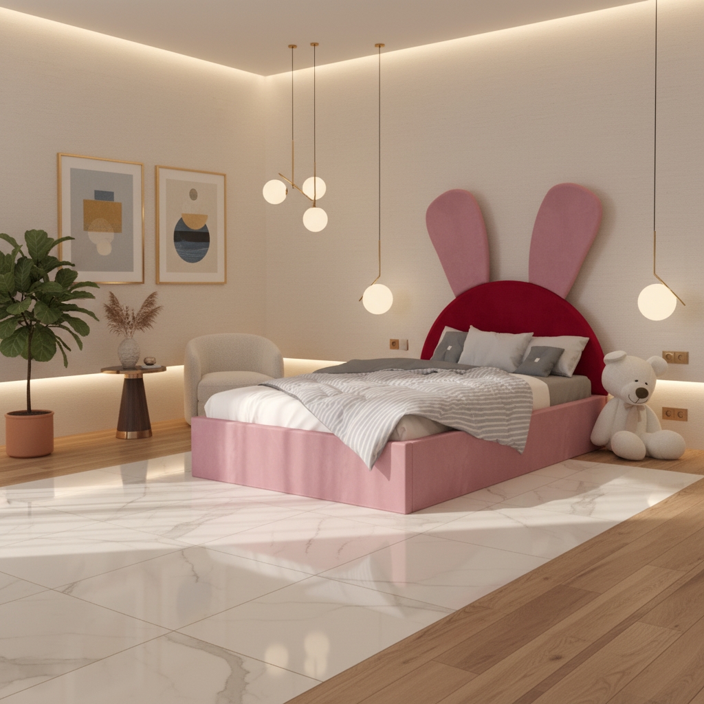 Pat Tapitat Naya Roz cu Rosu Catifea Premium