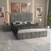Pat Tapitat Titan Crem Catifea Premium cu Noptiere Tapitate