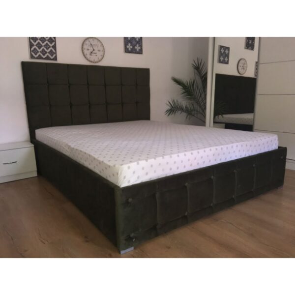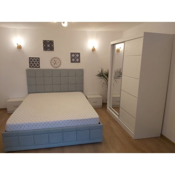 Set Dormitor Regal cu Pat Tapitat Vernil din stofa Dulap Gabriel 2 usi glisante cu oglinda